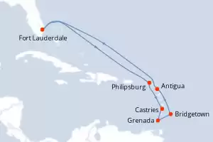 Itinerario : Fort Lauderdale, Philipsburg, Castries, Grenada, Bridgetown, Antigua, Fort Lauderdale