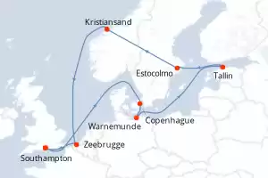 Itinerario : Southampton, Copenhague, Warnemunde, Tallin, Estocolmo, Kristiansand, Zeebrugge, Southampton