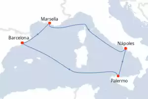 Itinerario : Barcelona, Marsella, Nápoles, Palermo, Barcelona