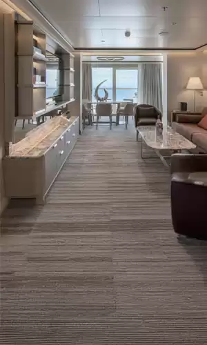 Las suites Vista, Panorama, Classic Veranda, Superior Veranda y Deluxe Veranda ofrecen entre 31 y 36 metros cuadrados. La Silver Suite tiene 73 metros cuadrados, 88/98 metros cuadrados para las Owner Suites, 105 para la Royal y 137/146 para la Grand Suite. Las suites más grandes se pueden unir con otra suite para obtener más espacio.