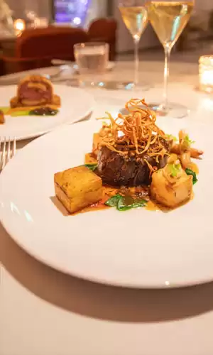 A bordo de los barcos de Celebrity Cruises, los pasajeros pueden disfrutar de experiencias culinarias excepcionales firmadas por chefs con estrellas Michelin. Con menús elaborados por chefs reconocidos, cada comida se convierte en un viaje gastronómico único. Creado por Daniel Boulud, el restaurante Le Voyage ofrece una cocina refinada inspirada en los sabores del mundo, reflejando los viajes del chef a través de platos como el Risotto de Langosta y la Pavlova de frutas rojas. La atmósfera del restaurante, creada por el dúo de diseñadores Jouin Manku, es íntima y sofisticada, ofreciendo una experiencia tanto visual como gustativa. Una atención especial también se presta a la carta de vinos, que es una de las más premiadas en el mar.