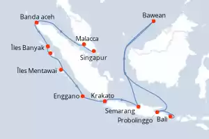 Itinerario : Singapur, Malacca, Banda aceh, Îles Banyak, Pulau Nias - Sumatra, Îles Mentawaï, Enggano, Krakato, Semarang, Bawean, Probolinggo, Bali